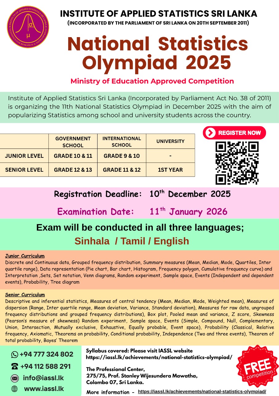 As the only professional body for statisticians in Sri Lanka, IASSL holds a highly respected reputation among the public. This recognition adds great value to the qualification. I wholeheartedly recommend the IASSL Diploma program to anyone who wishes to expand their statistical knowledge and gain a prestigious professional credential. It has been a truly rewarding and transformative journey.