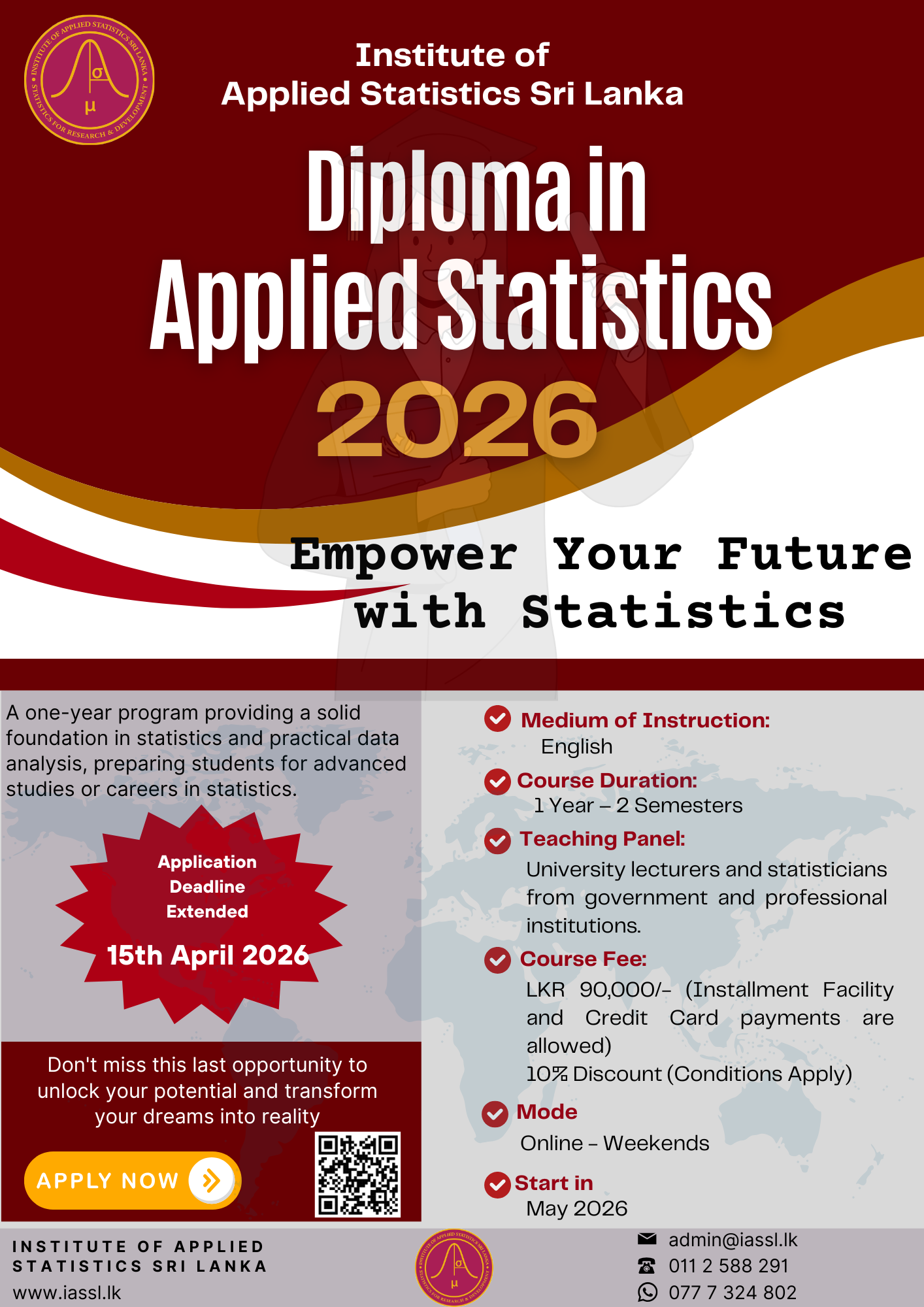 As the only professional body for statisticians in Sri Lanka, IASSL holds a highly respected reputation among the public. This recognition adds great value to the qualification. I wholeheartedly recommend the IASSL Diploma program to anyone who wishes to expand their statistical knowledge and gain a prestigious professional credential. It has been a truly rewarding and transformative journey.