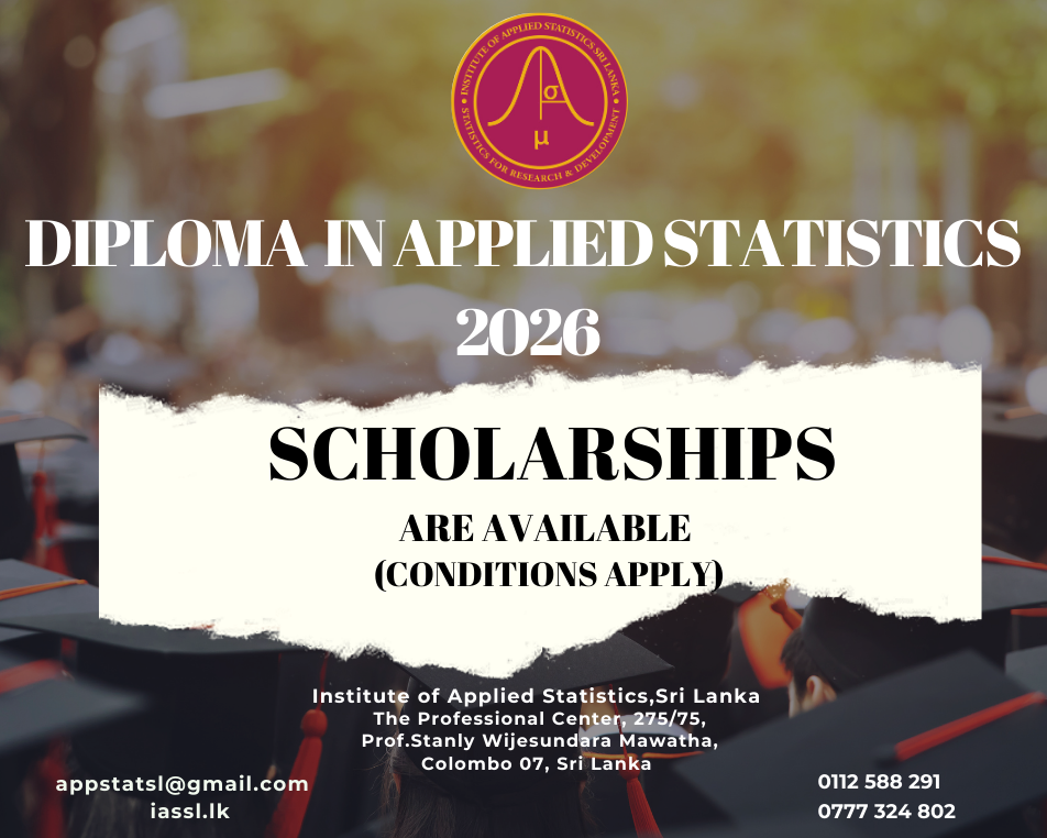 The Diploma in Applied Statistics is a one-academic year programme and equivalent to Level 1 of a B. Sc. Degree in Statistics. An academic year consists of two semesters, and a semester consists of 20-24 weeks that may be spread over six calendar- months. The successful students would be able to register for the Higher Diploma in Applied Statistics offered by the IASSL.